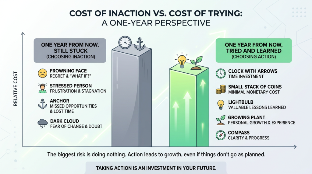 The worst-case scenario isn’t failure. The worst-case scenario is staying stuck for another year, wondering “what if.”